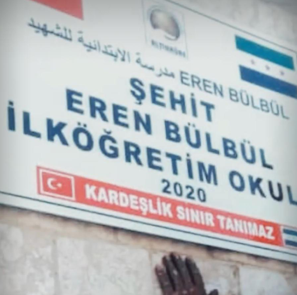 Eren’imizin adını desteklerinizle Suriye’de yaşatıyoruz. Adının verildiği okulumuz savaş çocuklarına eğitimlerini sürdürme şansı veriyor. Okulun ihtiyaçları siz değerli bağışçılarımız sayesinde karşılanıyor.